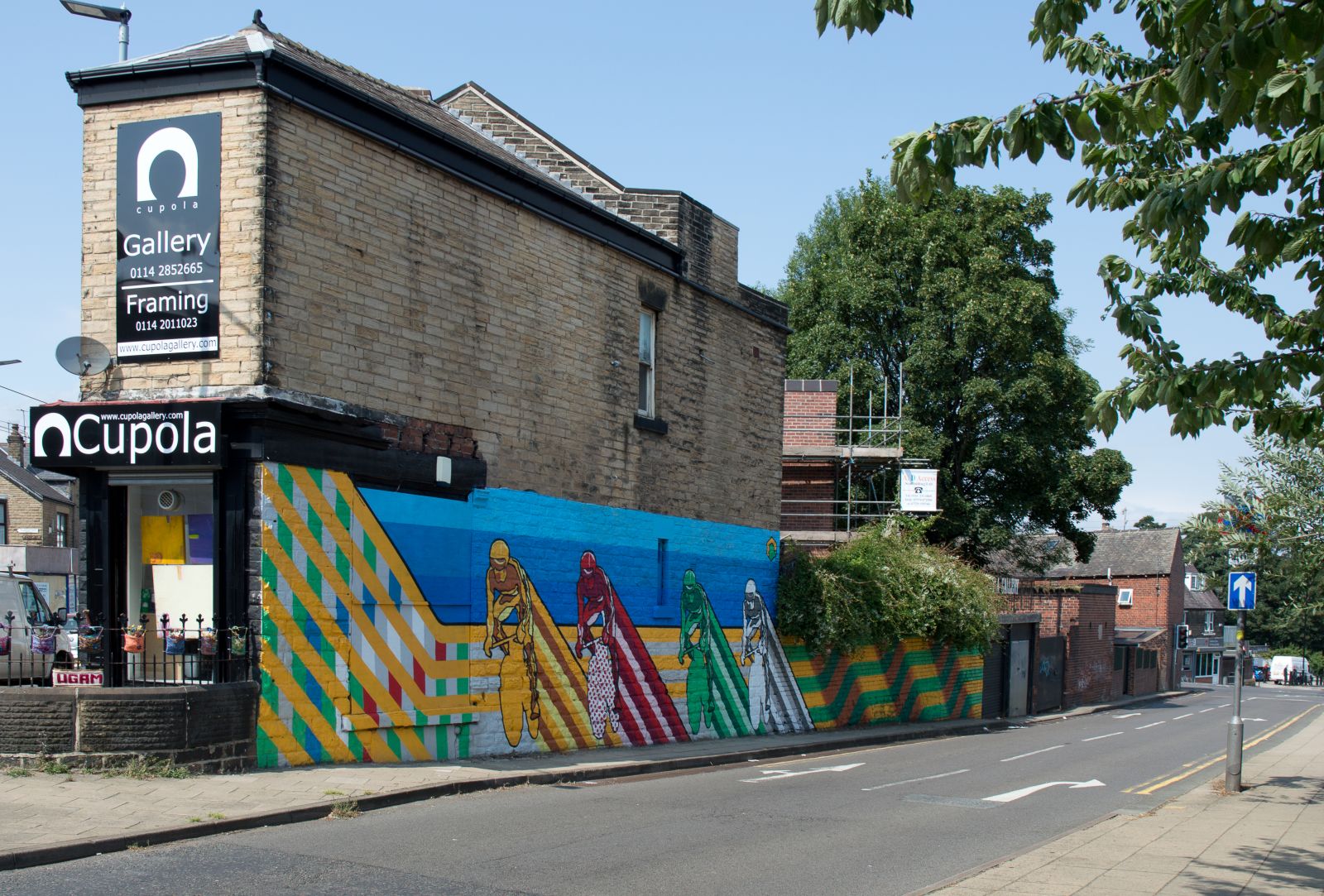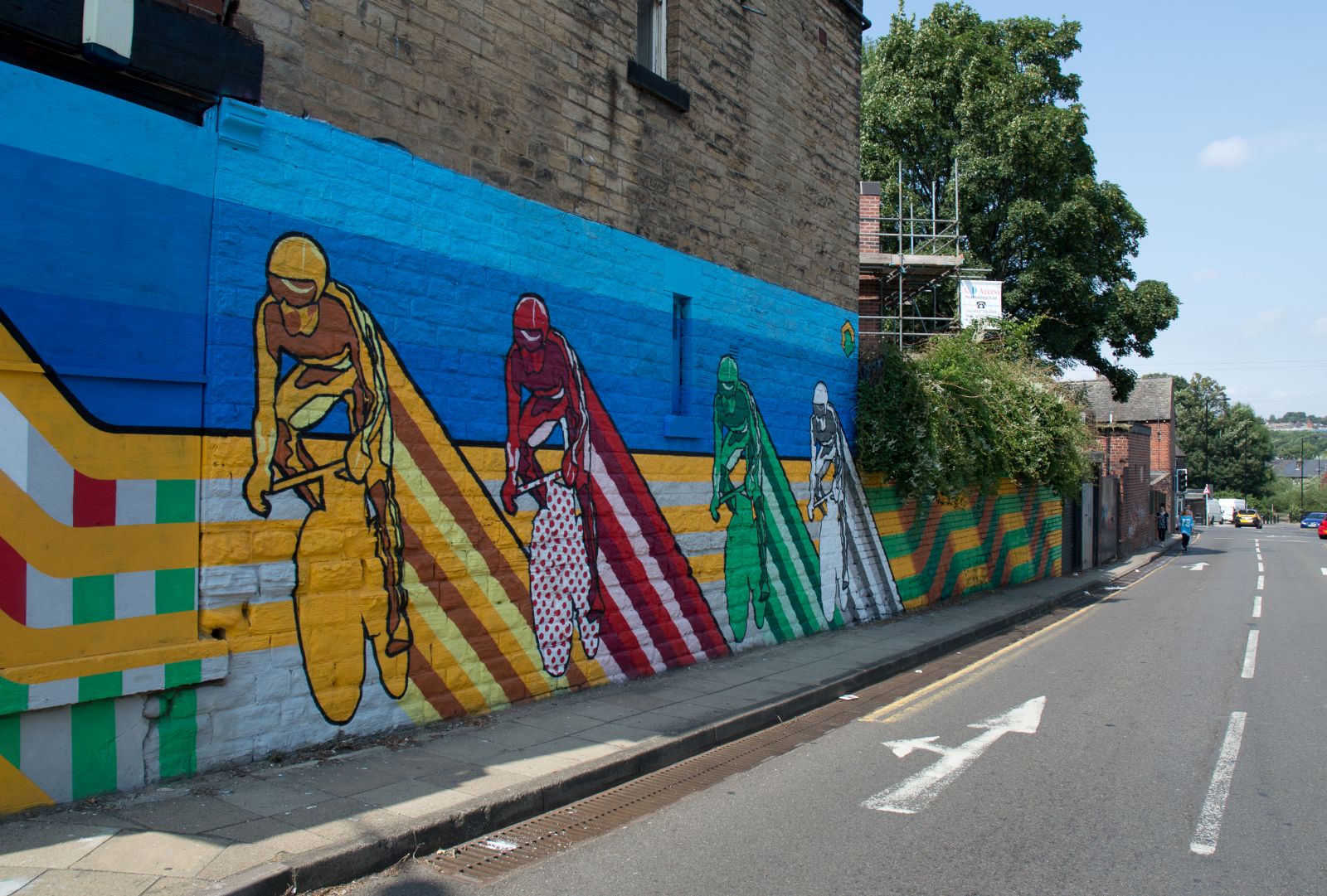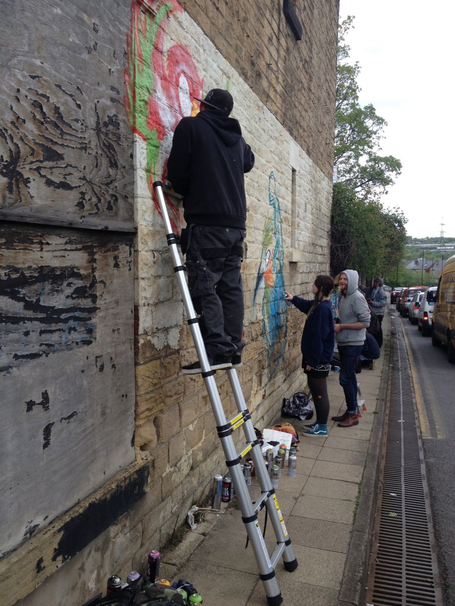 The wall began life in 2013 as a free space for graffiti artists to express themselves. In 2014 The talented Rob Lee painted his 'Four Jerseys' mural in commemoration of the Tour de France. This became a much loved piece. Three years on the mural is in need of repair and we feel it is time for a new artist to take over this mantel.