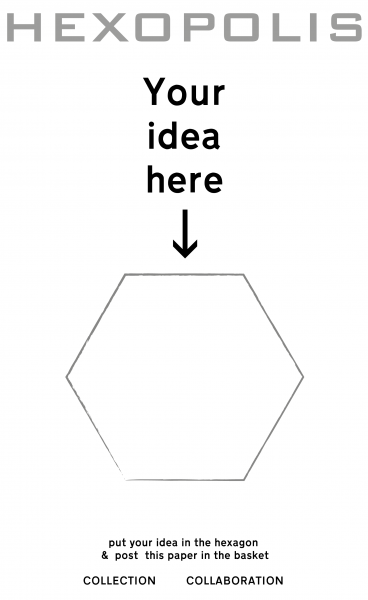 It’s intended to be open and unprescriptive. You can either print the downloadable sheet as a basis, or just draw a hexagon on whatever surface suits your idea best. It doesn’t have to be a regular hexagon. No need to send in your original, a photo or scan is fine.