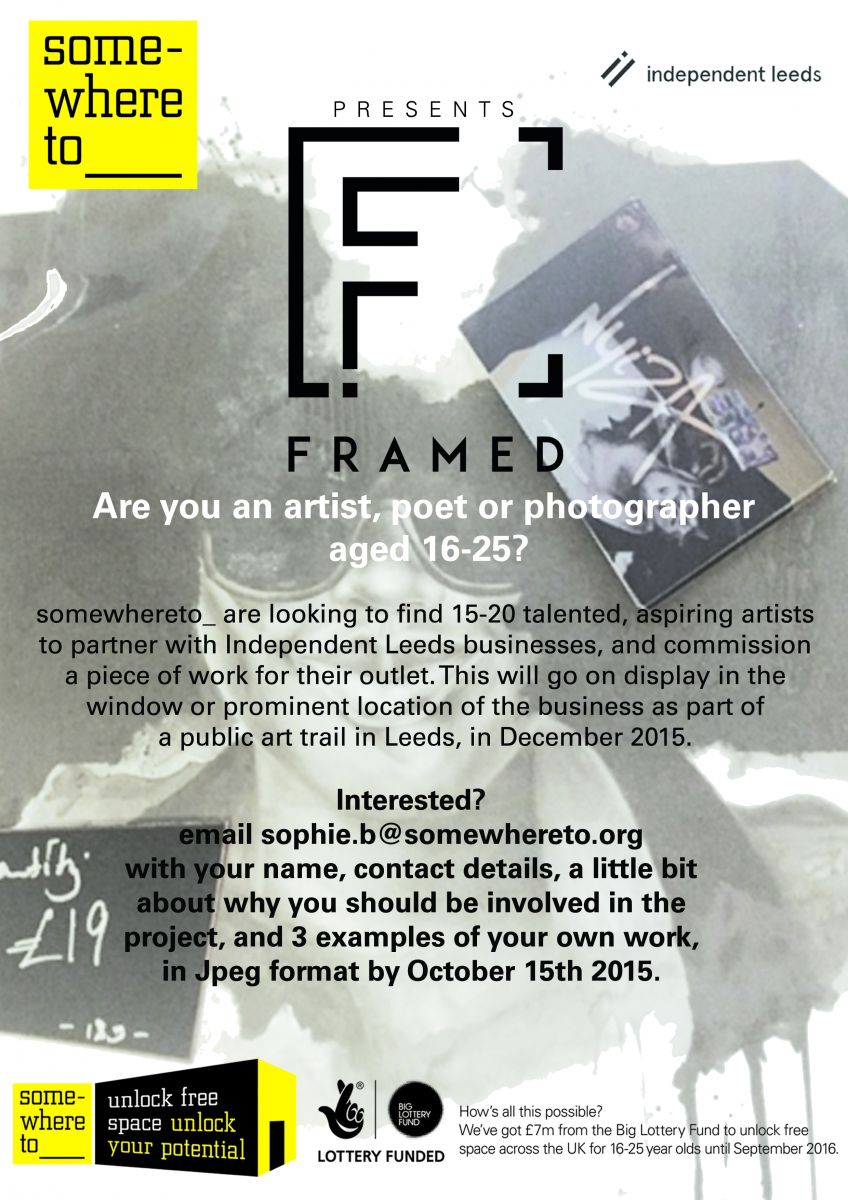 In collaboration with Independent Leeds (www.independentleeds.co.uk) We are looking to pair up young artists, photographers and writers with Independent Leeds businesses to commission work for their windows, which will be displayed as a walking tour in Leeds during December. This is an amazing opportunity for any young artist to gain serious exposure, network with artistic and innovative independent businesses, and learn about the world of enterprise.