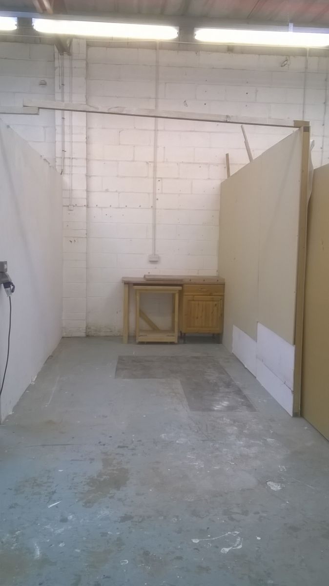 The studios are are mix of open plan and enclosed spaces. The available studio space is open plan and the it measures 2.5 x 4.5m, and rises the full two storey height of the unit. It opens onto a communal 'overflow' making area. The cost is £105 per month which includes all utilities and rates. The studios are accessible 24 hours a day, 7 days a week, have plentiful parking outside and have ground floor access.
