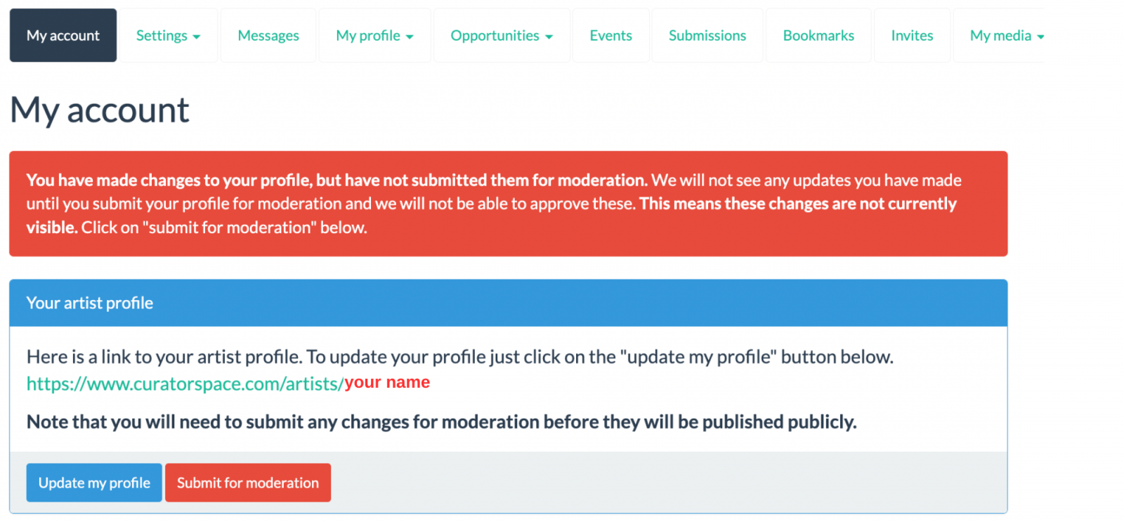 Then, click the red "Submit for Moderation" button. Our team will review your profile and approve it within three working days.