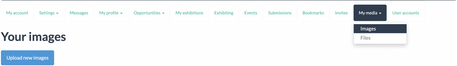 There are two ways you can upload images and files. The first one is through your Media Manager, under the tab 'My Media", where you can choose between uploading images or files. You would upload a file for example when asked to submit a CV.