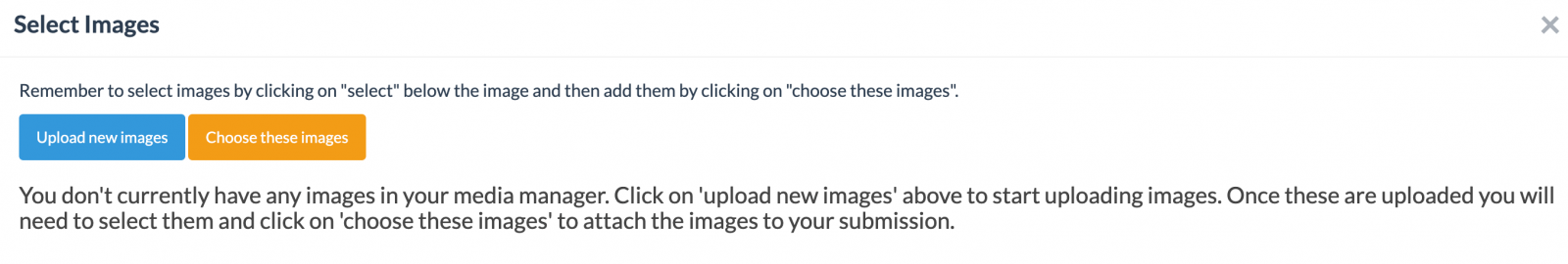However, the other way is by uploading images within the submission form is also by clicking on the green 'Add images' button.